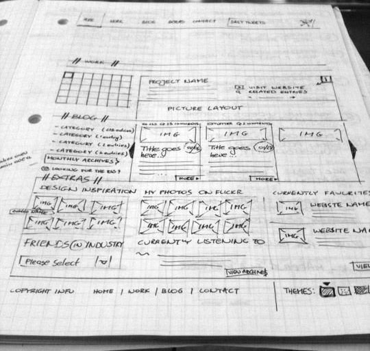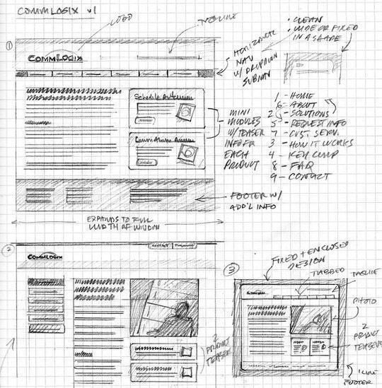 可见,网站框架设计草图越具体越好。下面分享几张国外的网站框架设计草图。