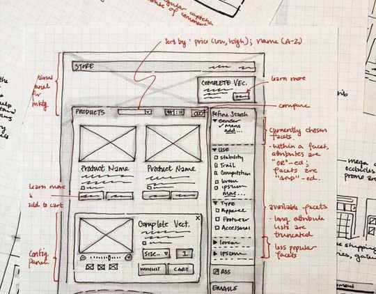 网站框架设计草图是对页面元素布局、页面造型设计、交互表现形式等所做的手绘草图说明,是对用户需求沟通的图形表现,以便更准确无误地与用户确认需求,也对网站风格设计过程起指导作用。
